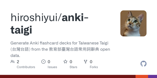 arrow-up11arrow-down1external-link教育部台語辭典 Anki Deckplus-squaregithub.com埕裡的鼯鼠 🐭MA · 2 days agomessage-square0linkfedilink